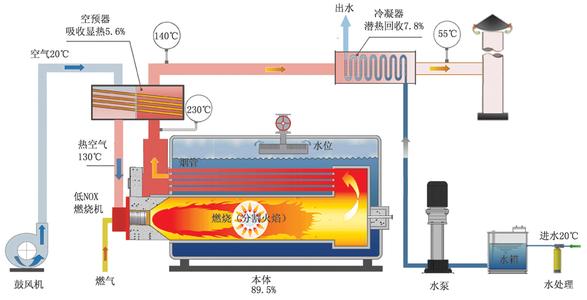 3、結構合(hé)理、緊湊,負荷適應(yīng)性(xìng)強,燃燒完(wán)全(quán),熱效率大於105%;