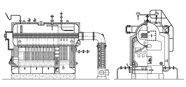 1、鍋(guō)爐型式為臥式快裝鍋爐、工質自(zì)然循環。 該鍋爐換熱係統由(yóu)鍋筒、左(zuǒ)右集箱、水冷壁組成,主(zhǔ)要受熱麵有爐膛水冷壁、部分鍋筒(tǒng)和鍋(guō)筒內對流管束。